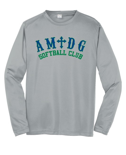 AMDG Softball- Men's Long Sleeve Competitor Tee - AMDG center chest Curved Logo | Shirt